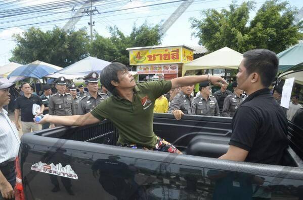 was sagen nun die Rothemden-nahen Poster hier dazu. Man hat ja die Bombenwerfer, die Granaten auf Kinder geworfen haben, nun gefasst. Es war ein Redshirt. Hier zeigt er gerade, wie er die Granate geworfen hat. Somit ist auch der Verdacht – es könnten Sutheps Leute gewesen sein – wie eine Seifenblase geplatzt. Er hat die Tat schon gestanden. Die Polizei arbeitet unter den neuen Polizeichefs recht gut, muss man ihnen lassen. Die hatten den Bombenwerfer sicher auch vor schon identifiziert, aber ihn nicht verhaftet, um die Rothemden nicht zu diskreditieren.